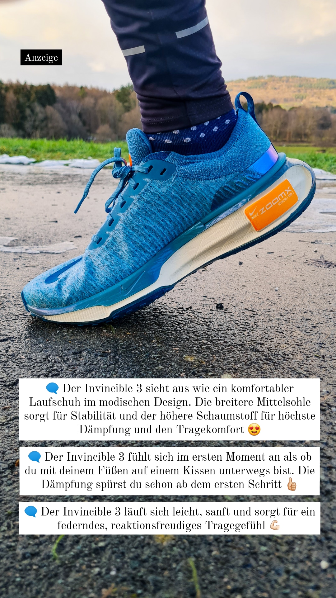 "I will use the Nike running shoes for two running sessions. The Invincible 3 is the first choice for my long and recovery runs. The running shoe is available now. Click on my link and try it out"