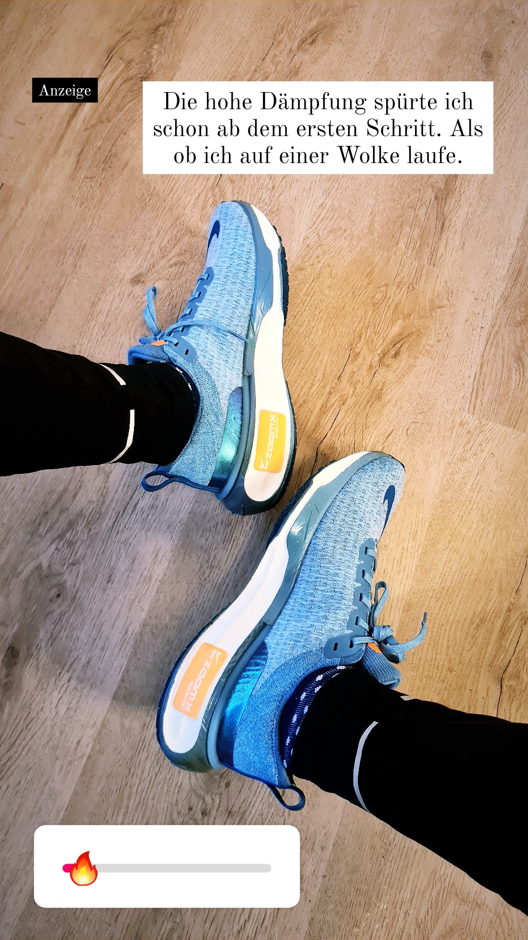 "Here they are! They look very beautiful. I feel the super-high cushioning and it's like walking on pillows. I never felt this before with other running shoes. My first impression is very positive."